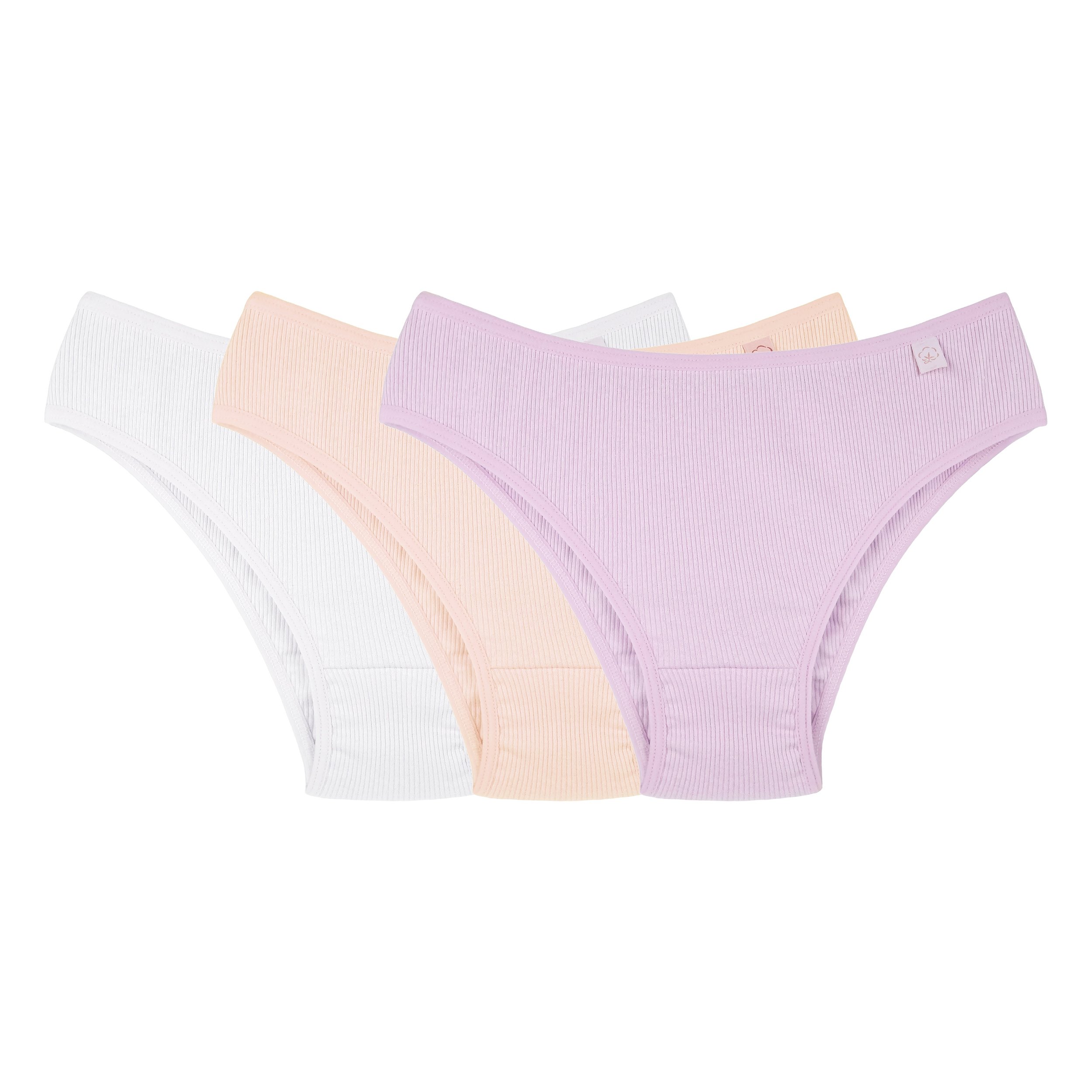 Kit com 3 Calcinhas juvenis caneladas de malha 100% Algodão.