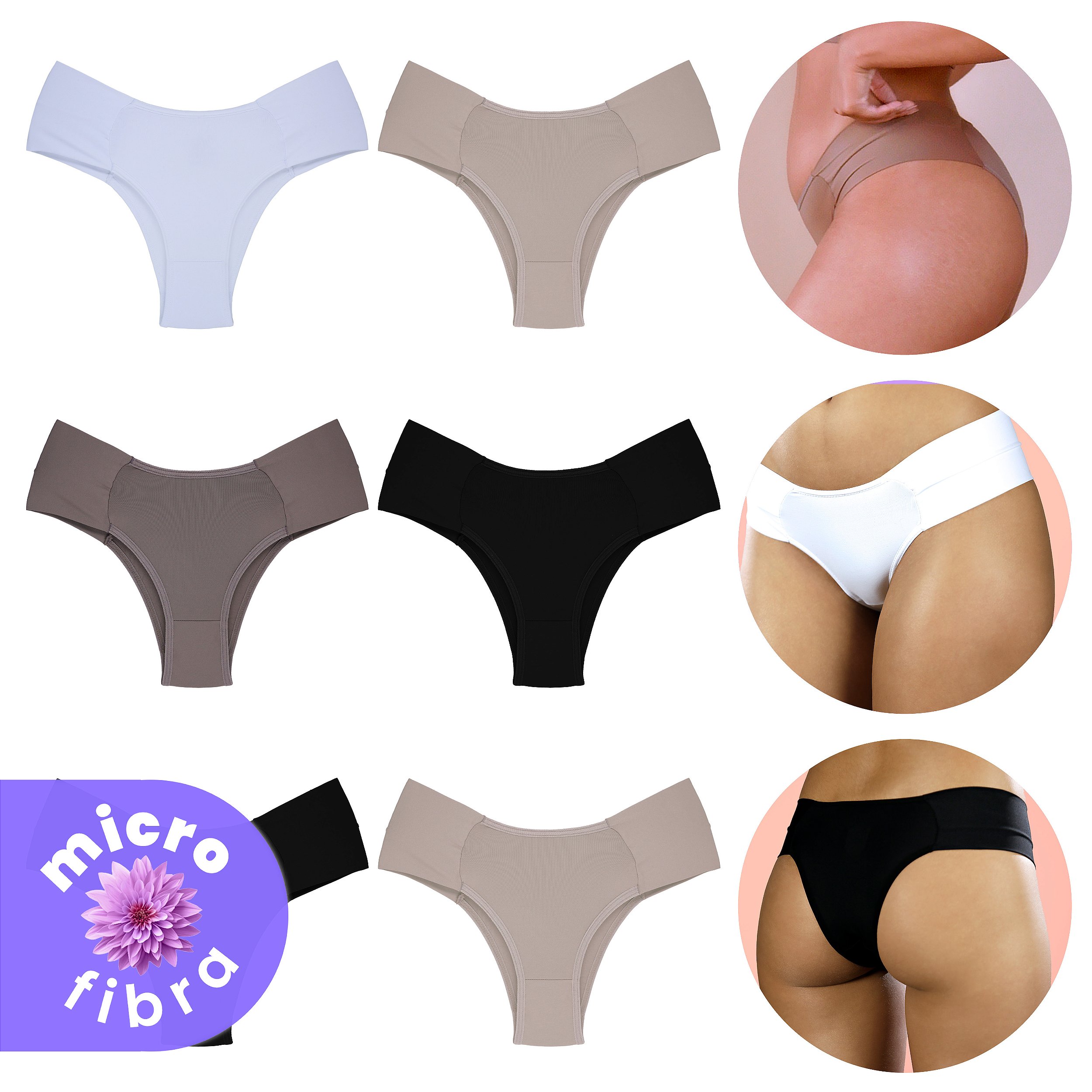 Kit com 6 Calcinhas Lateral Bombom de Microfibra com elastano LYCRA®