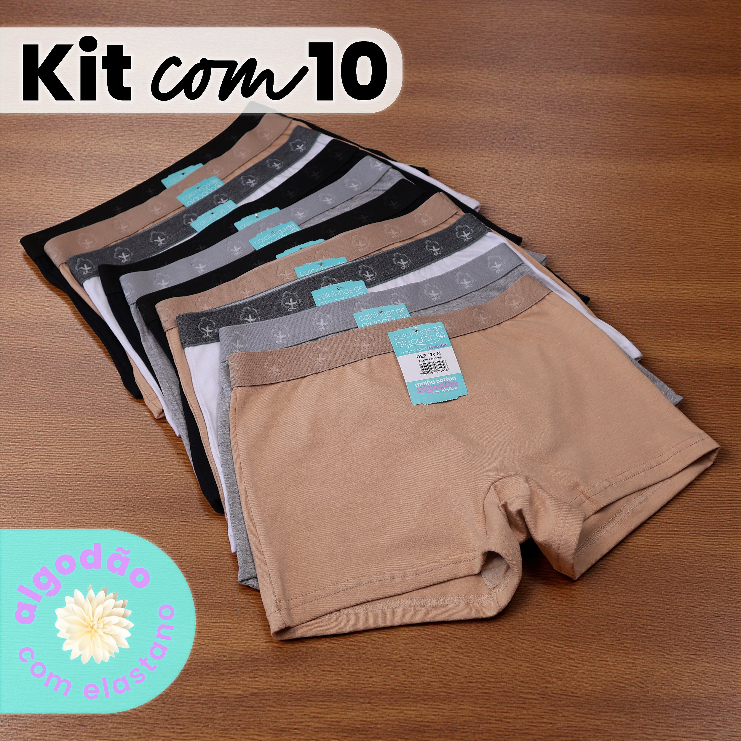 Kit com 10 Calcinhas Boxer Feminina Algodão com Elastano